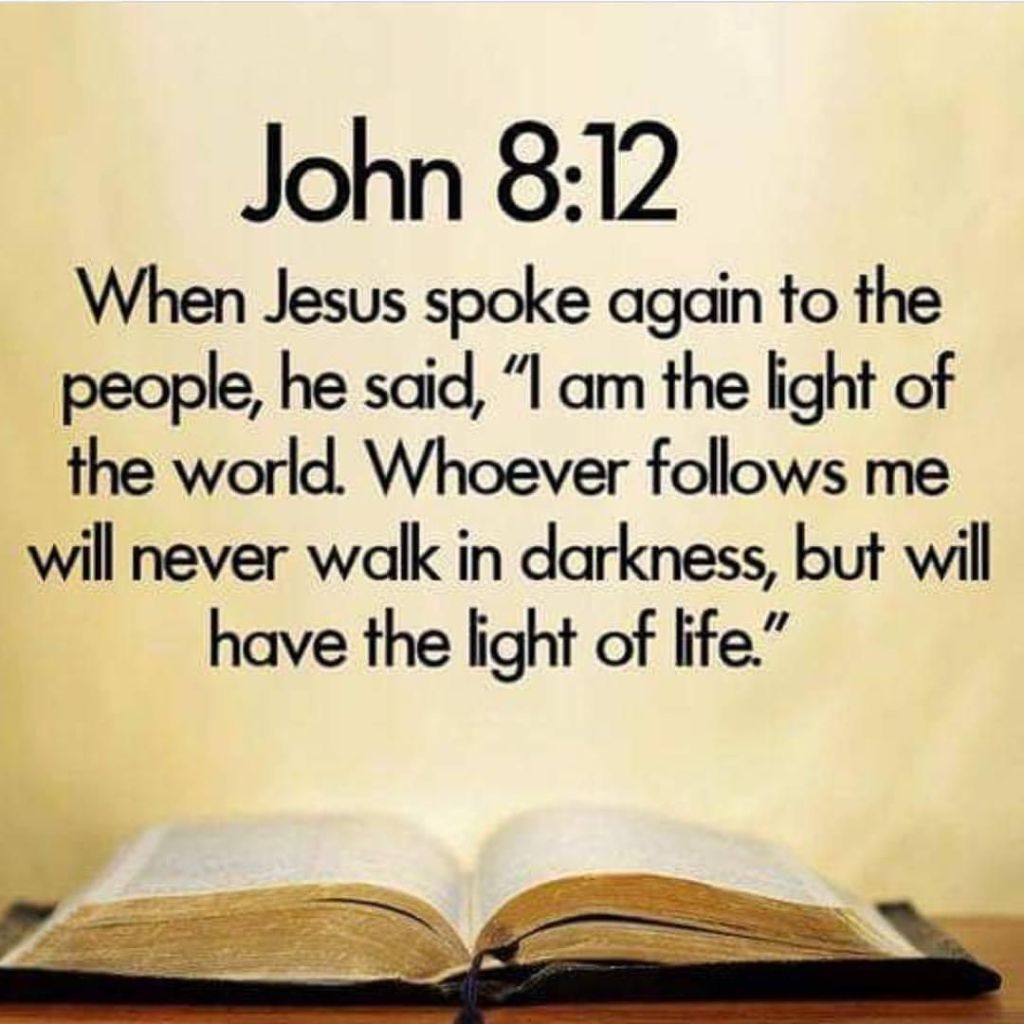 Jesus spoke to the people once more and said, “I am the light of the world. If you follow me, you won’t have to walk in darkness, because you will have the light that leads to life.” John 8:12
