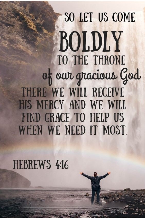 “Let us, therefore, come boldly to the throne of grace, that we may obtain mercy and find grace to help in time of need” (Hebrews 4:16). When the righteous face adversity [whether from spiritual warfare, a trial, or our disobedience], in humility, we come boldly before the throne of grace for our Father’s Help. With confidence and faith, we rely on the LORD’s promise to intervene and give us a victorious outcome.