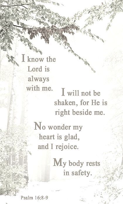 “This Scripture emphasizes the stability and strength that comes from relying on God. The psalmist is confident in the face of adversity because he knows God is with him. In essence, Psalm 16:8 is a declaration of faith, trust, and dependence on God, leading to a life of steadfastness and assurance.”