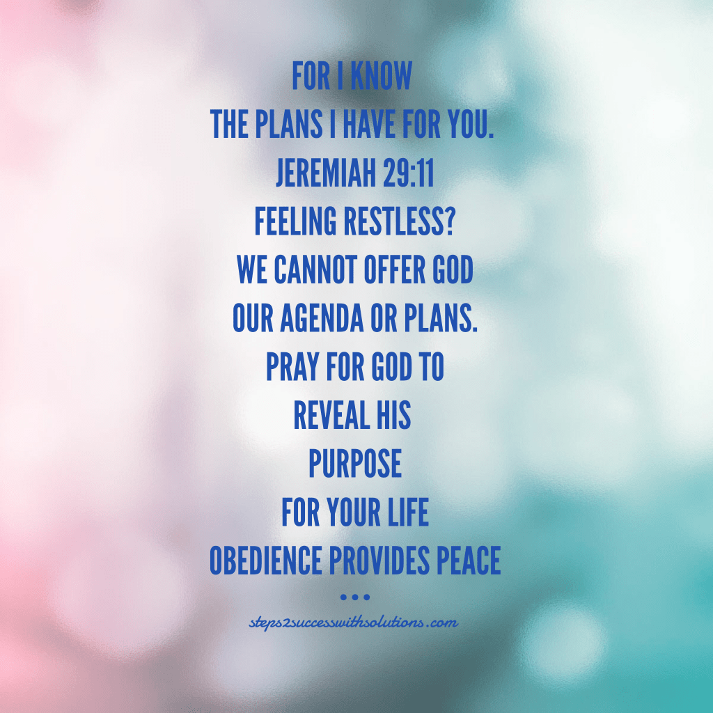 Study 1 Corinthians 12. Pray for God to reveal your gifts and purpose. Once you know what God has appointed you to do, exercise faith by moving forward. Remain confident. Never forget that you are not alone, God is directing your steps. The human effort of obedience to God gives us perfect peace. “You will keep him in perfect peace, whose mind is stayed on you, because he trusts in you.” Isaiah 26:3